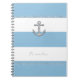 Blåblå och vit Rand-diamantankarbok för anteckningsbok. Anpassa framsidan med eller utan text.
