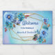 Geometric guld ramar dekorerat med en blandning av blåkornblommor i vattenfärg med röda knoppar och guldfärgad grönt löv för att anpassa