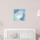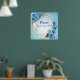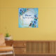 Blåblommor i vattenfärg med röda knoppar och guldfärgad grönt lämnar på en kreativ som skuggas av en turkosblå bakgrund som är nedbruten runt ett gyllene glittrande geometriskt ram för att anpassa gästen till bok.