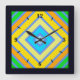 Kvadratisk väggklocka, dekoration för väggkonst och heminredning för dekortillbehör som är tryckt med Cornblomme Harmonious Färg Angled Line Art. Upprepa originalillustrationen för mönster av TheFabricSeal tryckt på beställning på Zazzle.com #ZazzleMade https://www.zazzle.com/store/thefabricseal TheFabricSeal ©️ Original. Den här unika väggklockan av hög kvalitet är en sjudande anpassningsbar som är utskriven med AcryliPrint®HD processaa och har en förinstallerad hängplats på baksidan för enkel hängning och en icke-tickande design. Modern contemporary konst är artikalt designad och tryckt för dina hem- och levande tillbehör, hemdekanter, mode påstående, moderna elektroniska tillbehör och tonar av ge presentidéer. Fin komplementär och harmonisk plan för färg med 45 graders vinkel akut equilateral rhombus linjer av kornblomblått tillsammans med levande himlar blue, baby bop blue, golden gult, solig gult, citrusfruktens orange, harlequin grönt och kiwi grönt färger. Blåblå färg, en underlig skugga av medelblått till ljusblått med en aning grönt. Kornblommans skönhet ljuger i dess mångsidighet. Den kan sträcka sig från avslappning till regal, konstnärlig till drömmande - allt beroende på vad den är parad med. Blue färg väcker lugn och förknippas med öppna utrymmen, frihet, intuition, fantasi och inspiration. Som en mjukare, ljusare skugga på blyspektrumet representerar kornblommans blå färg djup, lugn, besinning och fred. Den kan också användas för att förmedla en känsla av idealism, tillit, lojalitet, ärlighet, visdom, förtroende och stabilitet. Perfekt färg kombinationsalternativ för hela året och särskilt under Vår och sommarsäsongerna i säsong.