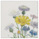 Gammal botanisk illustration av kornblommor i blått, gult och vitt.
