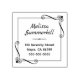 Enkel illustration av en kvadrat ram med dekorativa vridningar i två motsatta hörn. Anpassa med egen information.