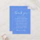 En elegant bröllopsfest tack mottagningskort uppsättning. Personlig tackmeddelande i stilfull typografi på en blå kornblå bakgrund. Du kan anpassa bakgrunden till din favorit bröllopstema färg. En speciell souvenir tack till dina gäster. Designad av Thisisnotme