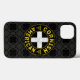 Cirkeldesign i svartvitt, gult och vitt med Cornish-flagga och Duke of Cornwall-konstruktioner. Med texten Cornish American runt omkring den.