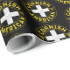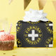 Cornwall Cornish American Flagga Gift Wrap. Cirkeldesign i svartvitt, gult och vitt med Cornish-flagga och Duke of Cornwall-konstruktioner. Med texten Cornish American runt omkring den.