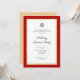 Den här inbjudan till julfest för företag erbjuder en snyggt-professionell med rött och guld gräns. Ett litet utandningsgrafik accentuerar inbjudets övre del. Anpassa den här inbjudan till juldagspartiet med din evenemangsinformation.