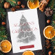 Minimal illustration av julgran med "säsonhälsningar" (maronröd färg är redigerbart)