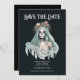 Är du tittar för ett unikt och modernt sätt att ta med dina gäster till Halloween bröllop till inbjudan? Titta bara på den här snyggtens vattenfärgsinbjudan! Med Spara datum visas en elegant porträtt av en korpsionsbrid på en mörkens tealbakgrund. Den här inbjudan finns även som en omedelbar nedladdning och är säker på att du får en påstående och dina gäster upphetsade för din stora dag!