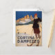 Poster att visa en kvinna på skidbackarna i Cortina d'Ampezzo.