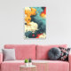 The artwork suggests a powerful, fluid motion, reminiscent of mixing paints, deep-sea currents, or nebula clouds. Scattered splatters and droplets of varying sizes overlay the larger forms, adding a sense of texture, depth, and chaotic energy. The overall effect is both lively and organic, offering a modern, high-impact aesthetic suitable for contemporary spaces.