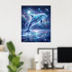 A joyful cosmic dolphin leaps through a radiant star tide, its sleek body formed from luminous nebula gradients and shimmering stardust. Trails of glowing particles follow its motion, capturing energy, freedom, and playfulness. The reflective cosmic ocean and vibrant sky enhance the sense of movement and life. This uplifting artwork symbolizes happiness and fluid motion, making it perfect for modern interiors, ocean lovers, and dynamic wall decor that brings light and positivity into any space.