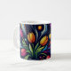 Ge din hjärteenergi med det här vackert balanserade mugg - en dans av stjärnor och tulpaner som gör kaffebrytningen till en kosmisk rymning.