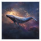 A majestic humpback whale glides gracefully through a vibrant nebula bursting with glowing orange, purple, and deep blue stardust. Its massive body sparkles with cosmic highlights against a vast starry expanse, blending ocean wonder with celestial fantasy. This breathtaking digital artwork captures pure awe and infinite beauty, perfect for posters, canvas prints, phone cases, mousepads, throw pillows, tapestries, and décor that turns any space into a dreamlike cosmic journey.