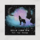 *~* Cosmic Måne . Howling Varg Rainbow Gräs Träd Fyrkantigt Visitkort