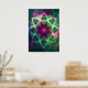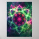 Mystisk kosmisk blomma mandala i skuggor av rosa, grönt och lila i galaxbakgrund.