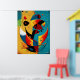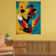 A vibrant geometric abstract of orbiting circles and sleek lines in teal, tangerine, red, and yellow. The design channels mid-century modern and Bauhaus sensibilities—clean shapes, strong color blocks, and lively motion. Perfect for contemporary interiors, creative studios, and gallery walls. Pair with minimalist furniture and warm lighting for a striking focal point.