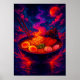 Cosmic Ramen Bowl under Red Måne Fantasy Poster