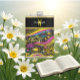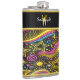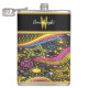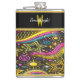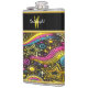 En energisk visning av färgstarkt mönster med snurrande linjer, ljusa stjärnor, lekcirklar och strålande sol.
