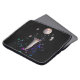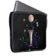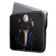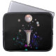 Ett centralt trumpetliknande objekt omgivet av färgfyllda sfärer och stjärnsprängningar ställs in mot en svart bakgrund. Det arrangemanga ge har en känsla av flytande eller kosmisk spridning.