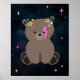 Ett baby-kosmisk varelser är ett skogsvattenduschtema med en illustration av en baby björn unge omgiven av stjärnor. Bear har rosa blixt på ansikte och stjärnor på huvudet. Bakgrund är vattenfärgsinspirerad kosmisk design.