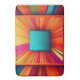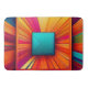 The Cosmic Velocity Bath Mat is a masterpiece of light and motion. Featuring a central teal square that acts as a focal point, the design explodes outward in a sunburst of radiant magenta, electric orange, and deep violet rays. The intricate line-art textures and shifting color gradients create a 3D effect that feels like you’re looking into a glowing digital prism.