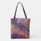 This vibrant tote bag features a swirling marbled fluid art in deep purples, gold and orange with cellular lace textures - evokes cosmic nebulae, molten metal and organic, vein-like patterns.