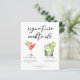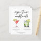 Denna sofistikerade signaturdrinkmeny har enkel svart typografi ovanför 2 av dina favoritdrycker och deras ingredienser för din kustbröllopsbar. En chic Cosmopolitan och gin och tonic-illustration ger en rolig touch till din barmeny. Komplett med parets namn och datum för deras mottagning.