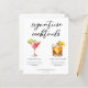 Den här sofistikerade menyn för namnteckning cocktails på lakan har enkel svart typografi över 2 av dina favoritdrycker och deras ingredienser för bröllop pub vid kusten. En chic Cosmopolitan och Mörk & Stormy teckning lägger till en roligt flair till pub-menyn. Fyll i med parets namn och mottagningsdatum.