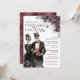 Inbjudan till vuxen Halloween fest. Den här utformningen har ett vattenfärgsskelettpar med en vintage Halloween-tvist. Burgundy vin ro, spindelnät och strängen ljus knyter ihop allt med en spooky ännu elegant touch. Enkel att anpassa, fyll i dina detaljer, perfekt för ditt eget party!