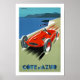 Vintage resor poster för myntverket i Azur (Fransken Riviera) i södra Frankrike och visar bilfortkörning längs tävling.