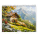 Twelve months of gentle charm and timeless wonder. This calendar features a series of cozy cottages illustrated in a soft, storybook style – each nestled in a seasonal setting that evokes warmth, nostalgia, and imagination. From springtime cottages under blooming cherry trees to summer hideaways by quiet brooks, golden autumn homes among falling leaves, and snow-covered rooftops glowing with holiday magic.