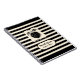 Djärk svartrandig design som ramar in ett svart träsnitt av ett äpple i cottagecore-stil på en krämfärgad bakgrund. Skapa din egen anteckningsbok för recept eller hemligheter från ditt kök.