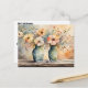 Två blomsterbuketter, sida vid sida på en hylla, i lergodsvaser är det perfekta sättet att säga "tack" på detta vykort i lantrastil.