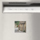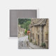 Fyrkantig fotomagnet av den gamla honungsburken i Cotswold-stenen med skiffer på tak i den lilla, quaint, saga-byn Castle Combe i Cotswets, England, Storbritannien med texten: "England, Castle Combe". En underbar souvenir!
