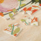Vårrosor, orange och lila blommor på vit. Shirley Novak