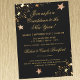 Spara pengar, tid och porto. Köp en nedladdning som ska skickas via mobil text, webbplats eller e-post. Svart bakgrund med ljusa guld-stjärnor på övre och grund-hörnen, skript och typografi, dekorera denna inbjudan på 5 tum x 7 tum porträtt för Nyårsaftonen party. Det är enkelt att redigera all text med hjälp av mallen. Du kan lämna valfri text/linjer tomt om du vill ta bort. Baksidan är en solid pärla färg. Högkvalitativ, fullt-färg-utfallande utskrift på båda sidor. Ett vitt standardkuvert medföljer. Premium-kuvert tillgängliga. Se "Om den här produkten" på sidan för mer information.