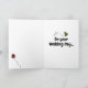 A sweet greetings card to celebrate a wedding, which can be personalized. The card features a colorful garden scene with an apple tree, a bumblebee buzzing around and a ladybird scuttling on the ground.
