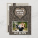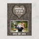 Country Rustika Landskaps Ekträd Spara Datum-kort - har en tryckt ek bark bakgrund med ett skuret hjärta på framsidan. Anpassa till ditt eget foto.