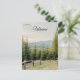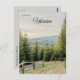 This postcard features the countryside in Ukraine with fir trees and a fence and mountains in the distance. Photo credit: Eugenia Pan'kiv, 2024..