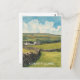 Ett vykort vintage-stil från grevskapet Clare, Irland, fångar rullande grönt fält, charmerande stugor och den hårda skönheten hos Burren i ett mutat, nostalgiskt färg.