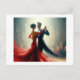 Ett par fångas mitt i dansen, där kvinnan bär en röd elegant och mannen i en klassisk svart tuxedo. De är involverade i en formell balrumsdans som ställs mot en dimmig bakgrund som antyder en stor, kanske opulent miljö.