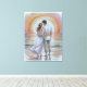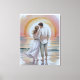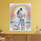 A lovely canvas of a loving couple on the beach at sunset conveying a romantic and peaceful emotion