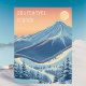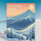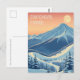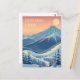 Snötäckta berg i Courchevel, Frankrike, i Europa! Vi hoppas att du har en underbar skidsemester. Detta vykort visar en vacker blågrå bergslandskap mot en gul orange himmel.