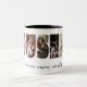 Detta är ett fotokollage mugg som spådomar ut ord COUSINS tillsammans med ett anpassningsbar-meddelande. Det här är perfektens gåva till en kusin för kusin på deras dag, deras födelsedag eller jul.