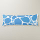 A long blue cushion, decorated with a dinosaur pattern, enjoy!