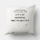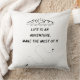 En: Add a touch of inspiration to your home with this cozy and stylish cushion featuring the motivational quote "Life is an adventure, make the most of it." Perfect for your living room, bedroom, or reading nook, this cushion not only offers comfort but also serves as a daily reminder to live life to the fullest. Made with high-quality materials, it will add warmth and positivity to any space. Whether you're relaxing on the couch or enhancing your décor, this cushion is the perfect blend of comfort and motivation.