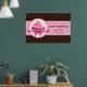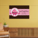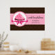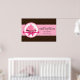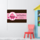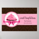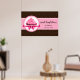 © 2014 Socialite Design. Eleganten poster utformning med en cupkaka med rosa isning inuti en rund snöre-design. Din text går in i en rosa och vit banderoll med ett skalat snöre-utseende kant. Ett rosa band gör designen lite elegant. Bakgrunden har ett brunt dammmönster.
