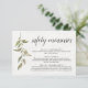 Covid 19 Säkerhetsmask Social Distansering Information - Använd en underbart elegant bakgrund för att kommunicera all säkerhetsinformation till dina gäster. Diskret grönska på en solid vit bakgrund kontrasterar fint med de gröna akvarellerna på baksidan.
