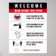 "Innan du går in" Poster; en uppsättning regler- eller kontorsprinciper innan du går in på ett byggnad, kontor, hussjukhus, använda det som en varningssignal för ditt företag under COVID-19.