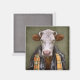 Den här utformningen har en porträtt av en ko i läder jacka och halsduk.